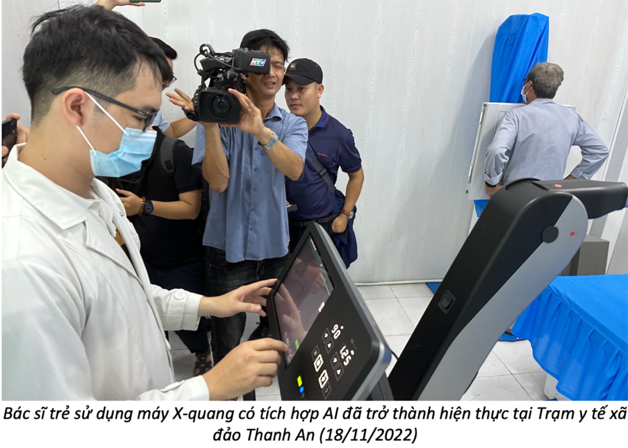 Nhờ ứng dụng AI được tích hợp trên máy X-quang kỹ thuật số, các bác sĩ trẻ sẽ dễ dàng đọc được đầy đủ các thương tổn có trên X- quang phổi, và nhờ máy X-quang đã được kết nối hệ thống PACs, khi cần hội chẩn và xin ý kiến các bác sĩ chuyên khoa về chẩn đoán các bệnh có liên quan các tổn thương trên X-quang phổi. Với các hoạt động và sản phẩm công nghệ sáng tạo này, chỉ chưa tới 15 phút các bác sĩ trẻ tình nguyện đã có một chẩn đoán chính xác và kế hoạch điều trị rõ ràng cho người bệnh.