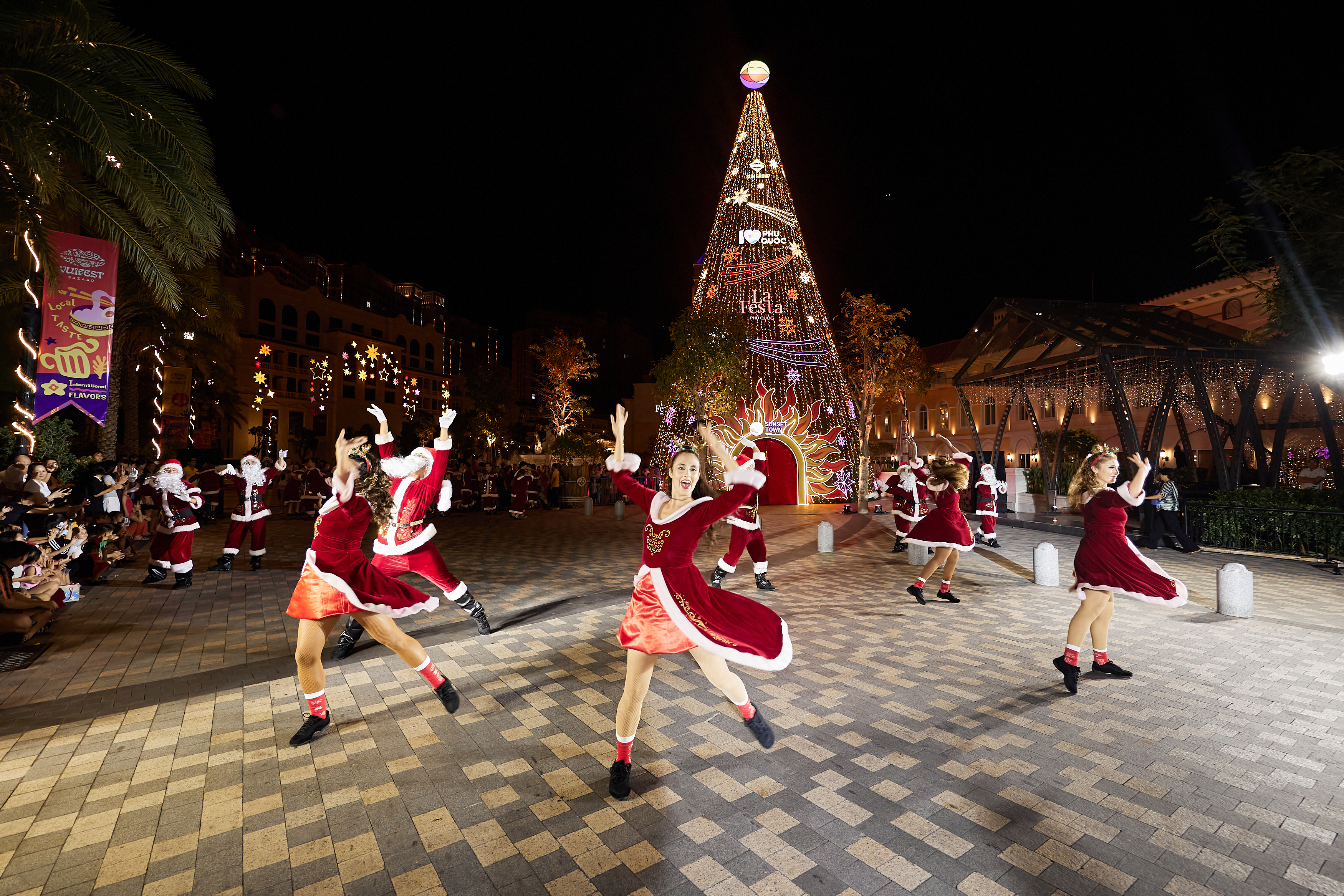 Mùa lễ hội được thắp sáng không chỉ với cây thông khổng lồ nơi đảo Ngọc, mà còn rộn ràng với những giai điệu Latin tươi vui từ những vũ công của Joy Joy Show - show ca hát nhảy múa hoạt náo sẽ diễn ra hàng ngày tại Thị trấn Hoàng Hôn Sunset Town bắt đầu từ 21/12. Các vũ công quốc tế trong trang phục Noel truyền thống đã khiến du khách tham dự buổi lễ không thể không nhún nhảy theo âm nhạc và những vũ điệu rộn ràng, khởi lên một mùa Noel tưng bừng trên xứ đảo xinh đẹp.