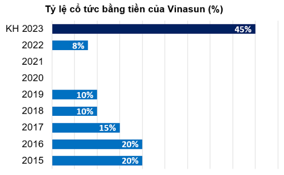 Tại ĐHĐCĐ bất thường lần 1/2023 tổ chức ngày 13/7, cổ đông Vinasun đã thông qua kế hoạch trả cổ tức năm 2023 tỷ lệ 45%. Cổ đông cũng đặt vấn đề mức chia cổ tức như vậy là khá nhiều, vậy kết quả kinh doanh năm 2023 và những năm sau có duy trì được mức cổ tức như vậy không. Ban lãnh đạo cho biết, dựa trên cơ sở có 90 - 95% cổ đông gắn bó với công ty trong suốt thời gian dài, Vinasun sẽ luôn cân đối sự phát triển công ty và quyền lợi cổ đông.