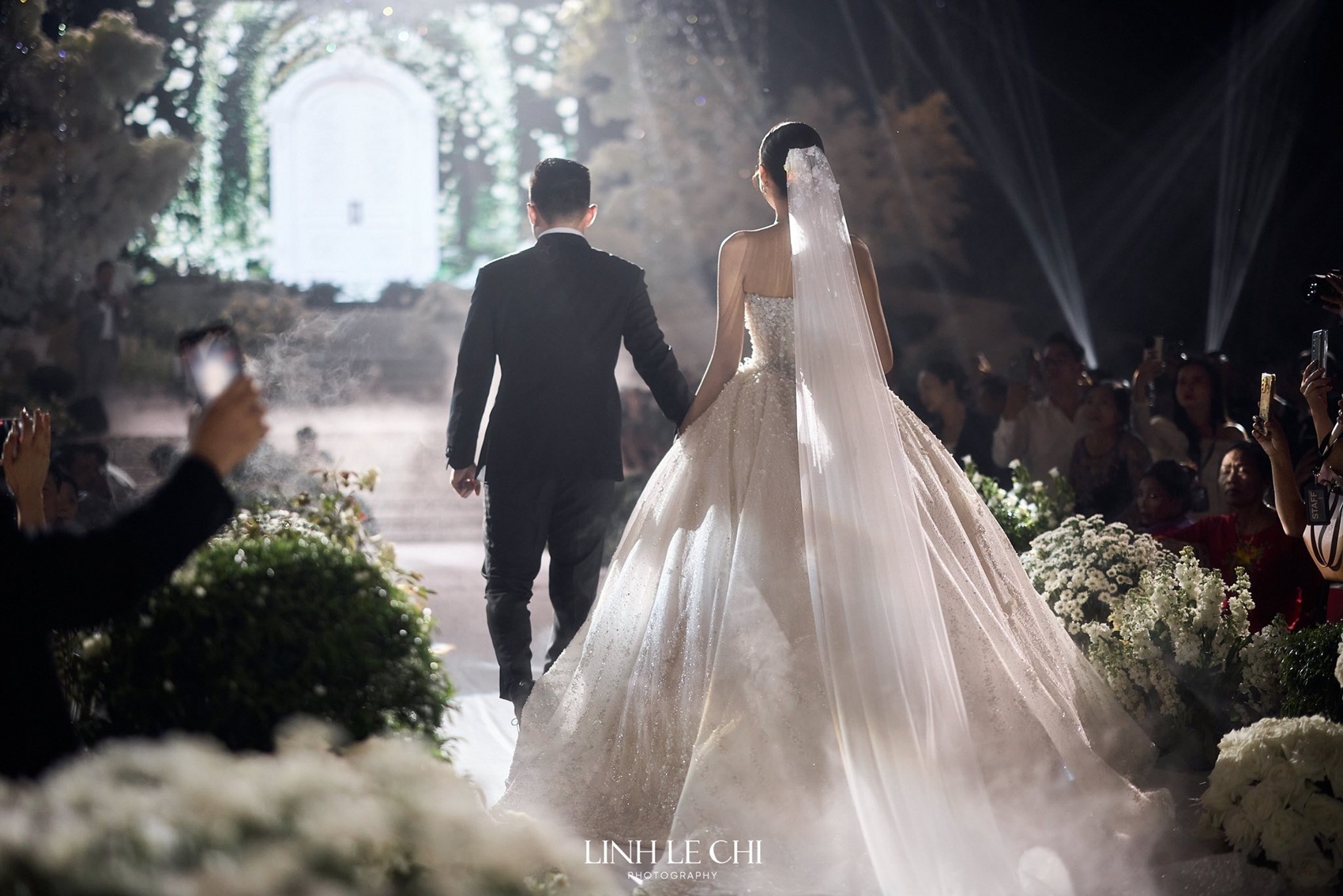 Bên cạnh không gian tiệc cưới rực rỡ như cổ tích thì 3 bộ váy cưới của cô dâu trong hôn lễ cũng thu hút rất nhiều sự chú ý của khán giả.