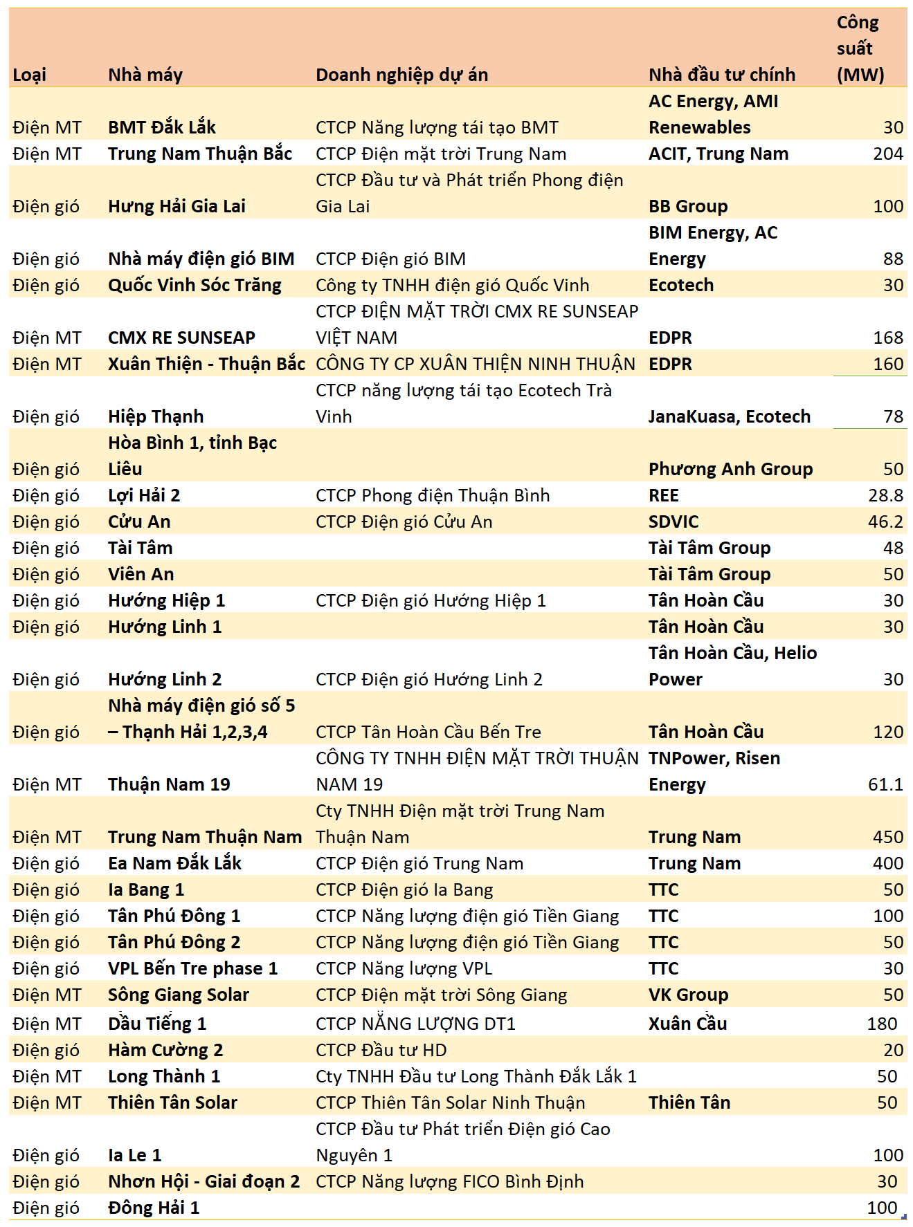 (*) Có 2 dự án điện gió mang tên Đông Hải 1 tại Trà Vinh (thuộc Trung Nam Group) và Bạc Liêu (liên quan Bắc Phương Group)
