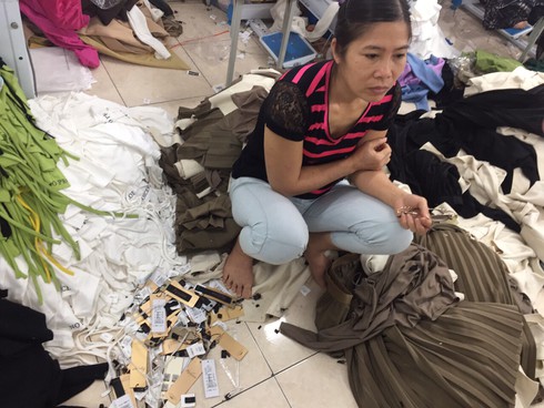 Cục Quản lý thị trường Hà Nội (Đội QLTT số 17) kiểm tra cơ sở may mặc tại 503 Bát Khối, phường Thạch Bàn, quận Long Biên phát hiện công nhân may của cơ sở này đang thực hiện việc cắt tem nhãn gốc bằng tiếng nước ngoài và đính thay bằng nhãn NEM, IFU