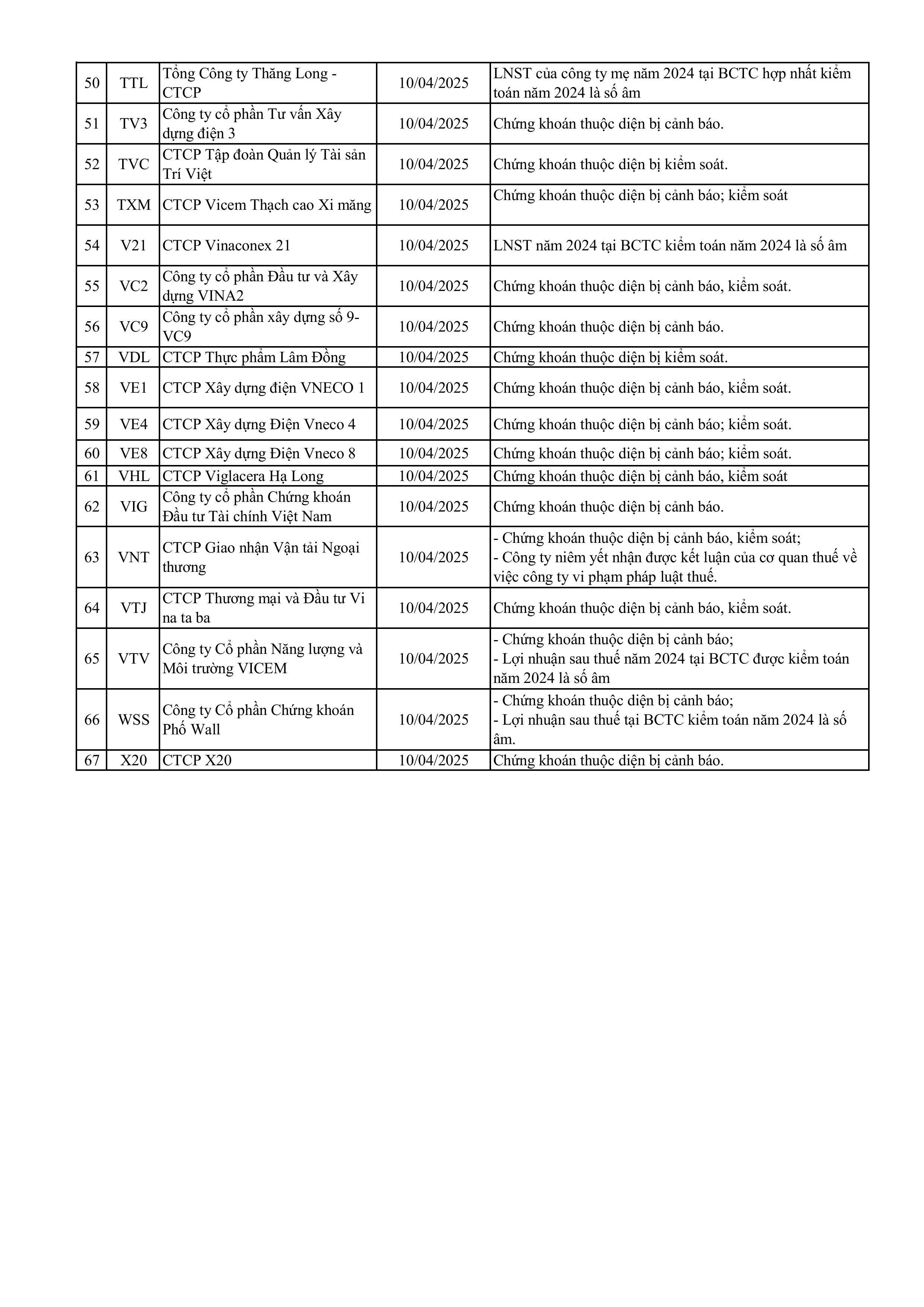 Ngoài ra, danh sách cổ phiếu bị cắt margin quý 1/2025 còn các cổ phiếu thuộc công ty niêm yết nhận được kết luận của cơ quan thuế về việc công ty vi phạm pháp luật thuế như VNT, NRC hay cổ phiếu niêm yết dưới 6 tháng như CAR.