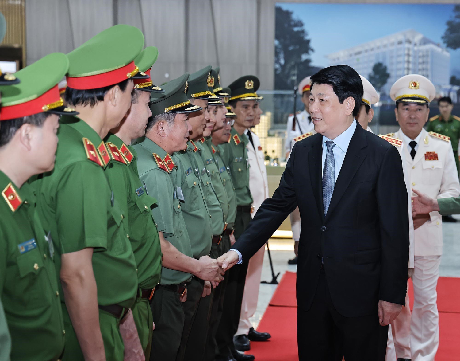Ủy viên Bộ Chính trị, Chủ tịch nước Lương cường dự Hội nghị sơ kết 6 tháng đầu năm 2025 của Bộ Công an _Ảnh: TTXVN