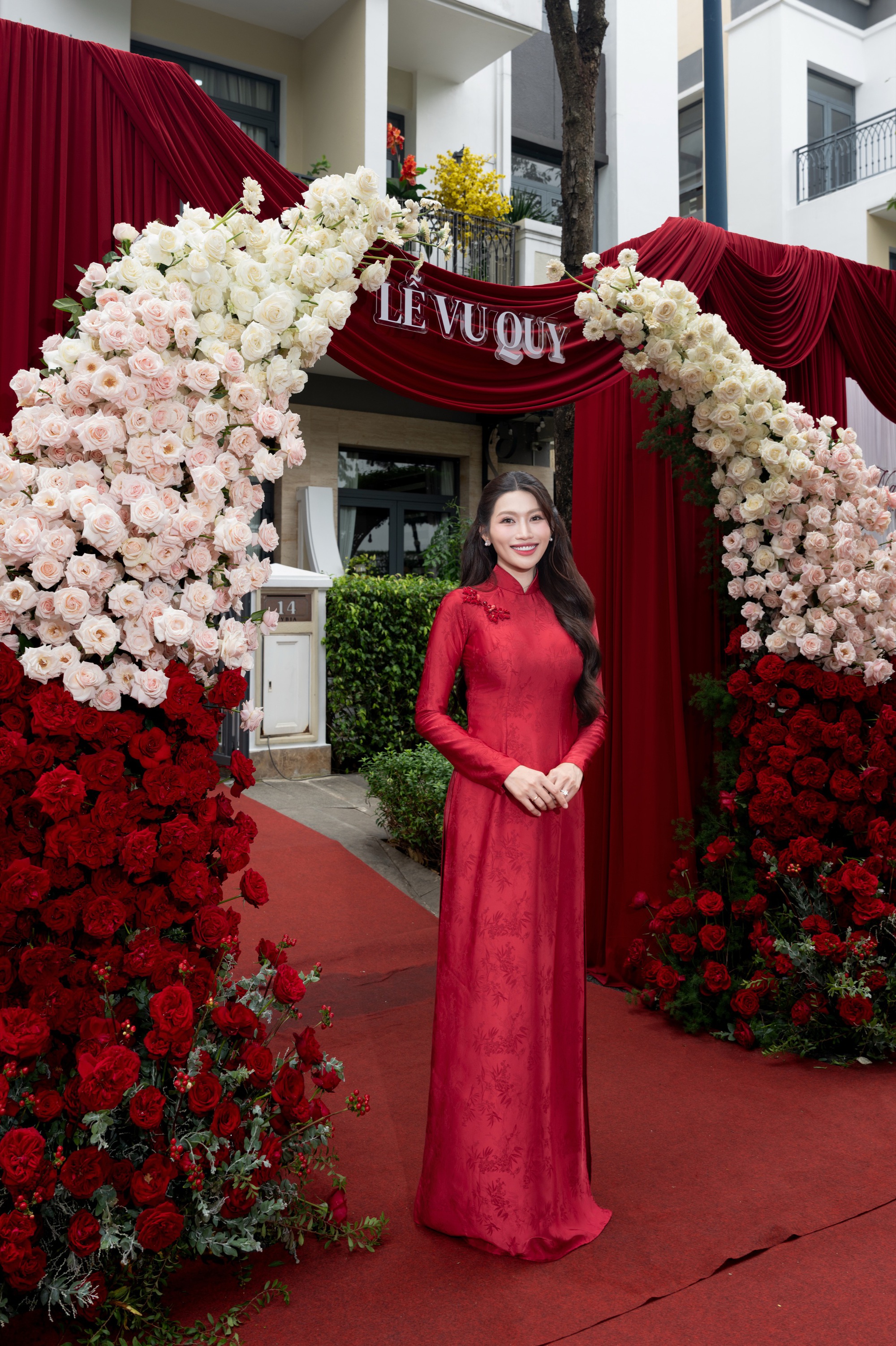 Trước đó, trong lễ vu quy ngày 25/10, Quỳnh Châu diện áo dài đỏ cũng cho thấy vòng bụng lớn bất thường. Người đẹp cũng liên tục tạo dáng cầm hoa che chắn vòng hai. Loạt hint này càng chứng minh việc cô dâu đang mang thai con đầu lòng càng có cơ sở.