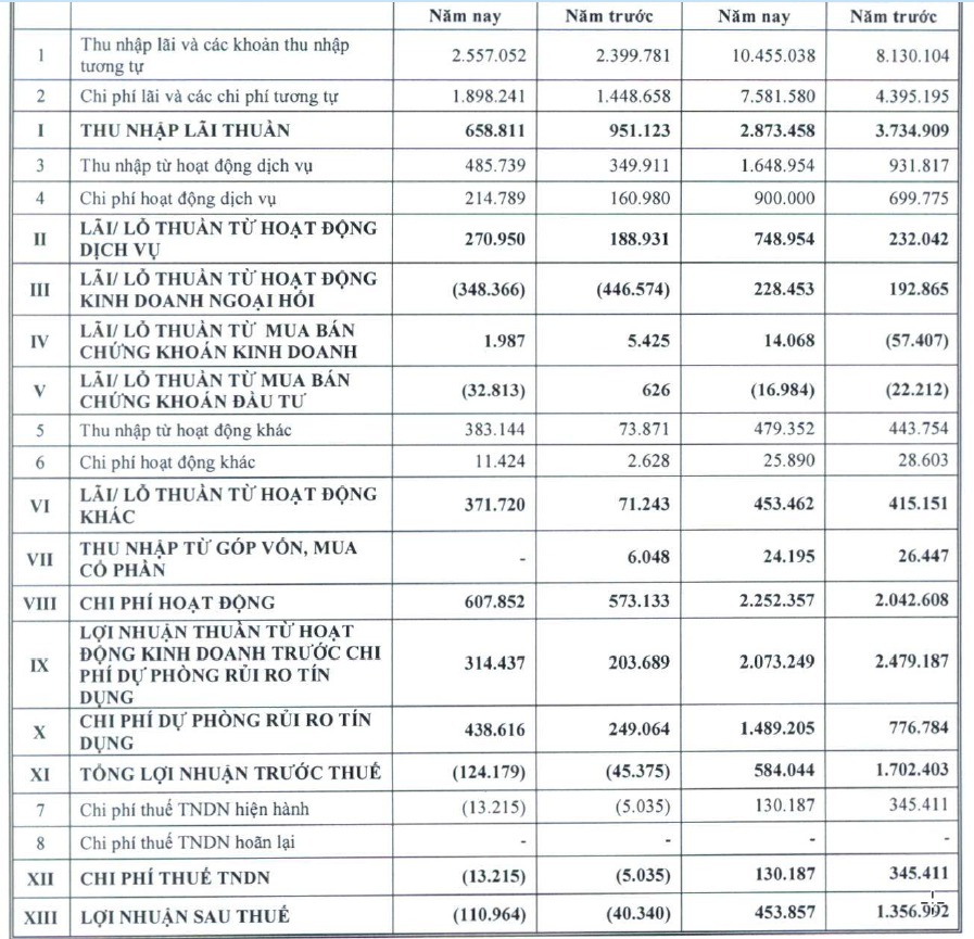 Ngân hàng TMCP An Bình (ABBank, UPCoM: ABB) vừa công bố báo cáo tài chính hợp nhất quý 4/2023 với thu nhập lãi thuần đạt 658 tỷ đồng, giảm 30,7% so cùng kỳ 2022.