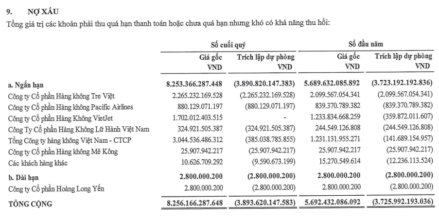 Đáng chú ý, tính đến cuối tháng 6, nợ xấu của ACV tăng mạnh 45% so với đầu năm (lên 8.256 tỷ đồng). ACV đã trích lập dự phòng 3.725 tỷ đồng.