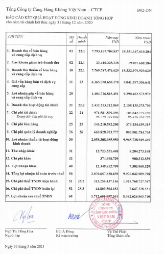 Nguồn: BCTC kiểm toán 2020 của ACV.
