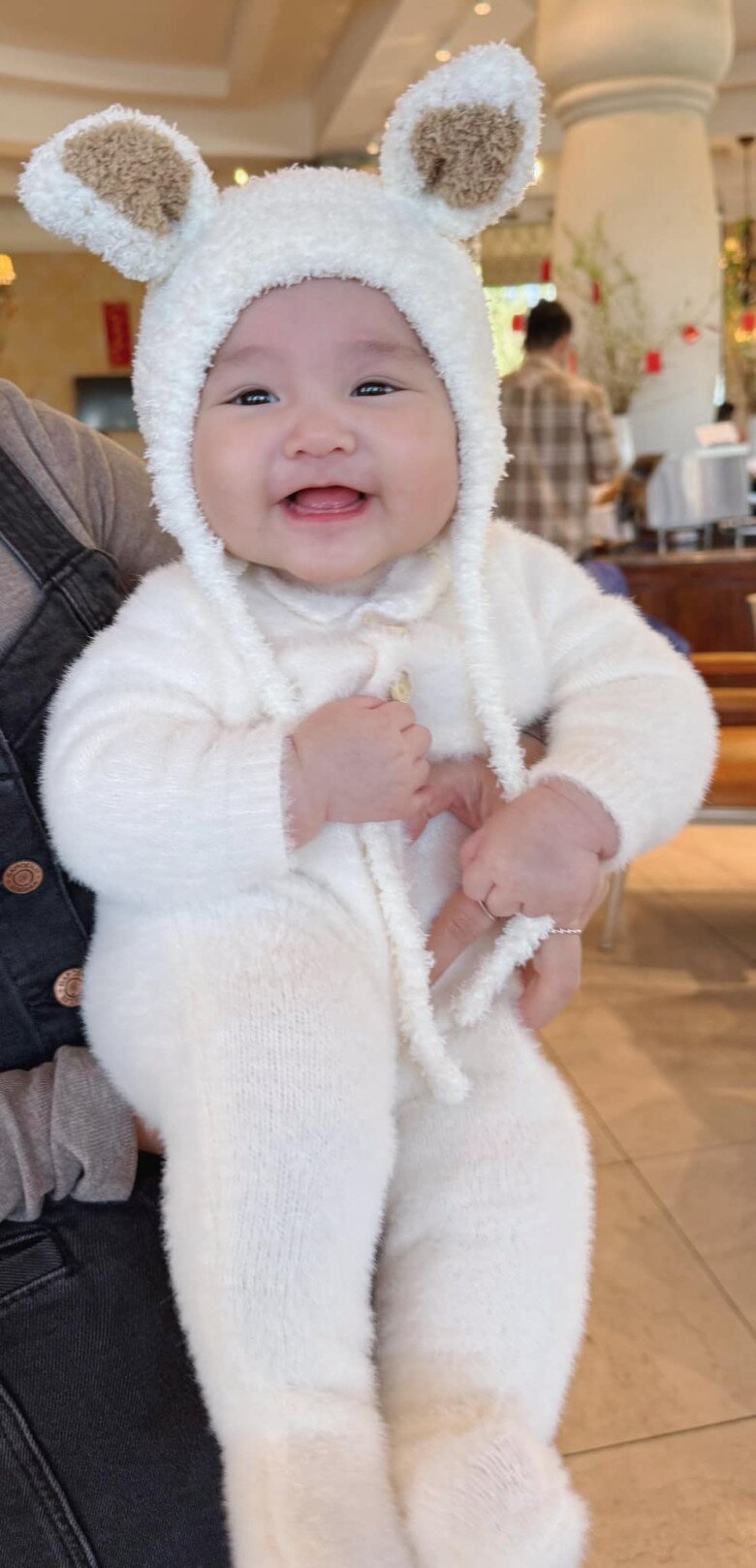 Mới đây, Lý Thùy Chang đăng tải bộ ảnh mới của "ái nữ". Trong ảnh, cô bé được mẹ cho diện bộ quần áo liền thân thỏ trắng xinh xắn. Người đẹp đăng ảnh kèm dòng trạng thái: "Thỏ trắng Gia Linh nè. Nhả vía sinh con gái bụ bẫm xinh yêu cho mấy cô nha".