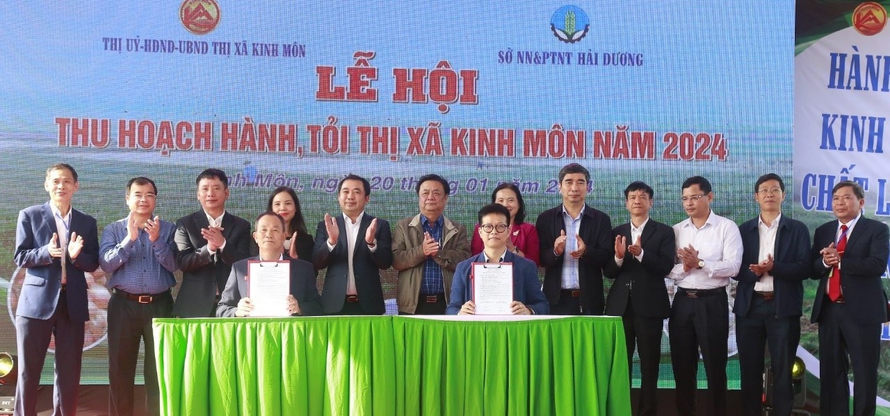 Phát biểu tại buổi lễ, Bí thư Tỉnh ủy Hải Dương ông Trần Đức Thắng cho biết: Toàn tỉnh Hải Dương hiện nay có hơn 6.500 ha hành, tỏi. Trong đó, thị xã Kinh Môn dẫn đầu tỉnh về diện tích trồng với gần 4.000 ha. Vùng hành, tỏi Kinh Môn được ví như “thủ phủ” hành, tỏi của cả nước, được sản xuất tập trung quy mô lớn trên vùng đất phù sa ven sông Kinh Thầy và sông Kinh Môn. Tất cả 23/23 xã phường của thị xã đều sản xuất được cây hành, tỏi. Sản lượng hàng năm đạt trên 100 nghìn tấn, giá trị kinh tế đạt trên 1.700 tỷ đồng/năm.