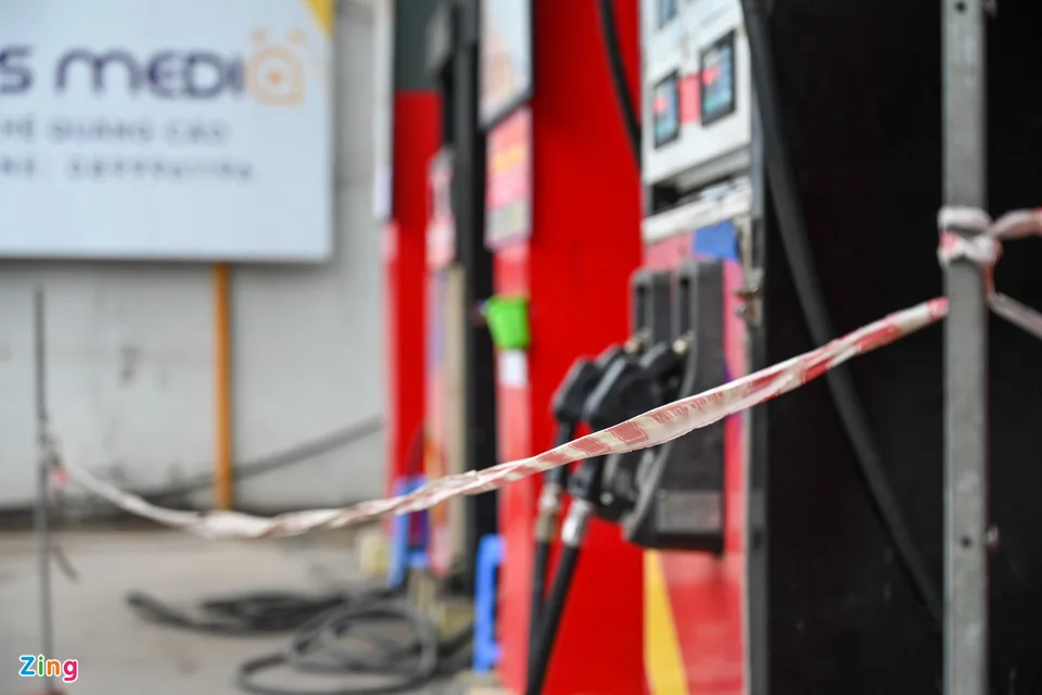 Những sợi dây rào chắn được chăng tạm bợ. Phía ngoài, thấy những tấm bảng báo hết xăng treo nên những người đi xe máy qua cũng không rẽ vào. Ảnh: Zing.