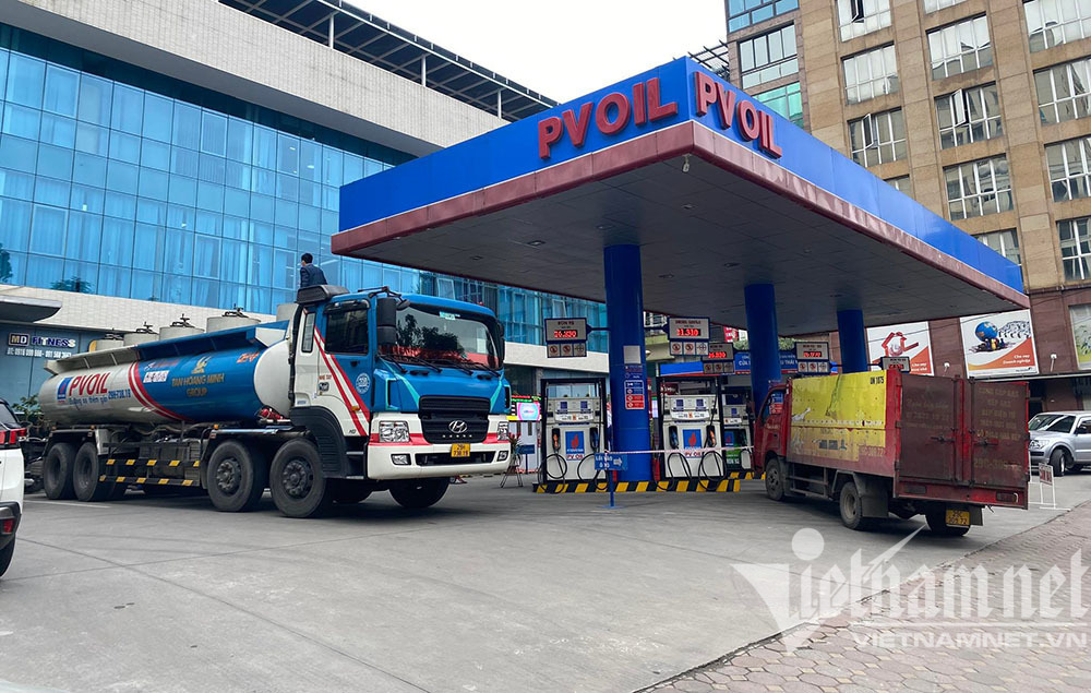 Một số cửa hàng khác đang tiếp xăng vào bồn để kịp phục vụ người dân. Ảnh: Vietnamnet.