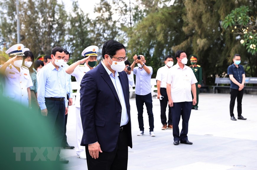 Chiều 12/3, Thủ tướng Phạm Minh Chính và đoàn công tác đến dâng hương tại khu tưởng niệm chiến sỹ Gạc Ma (xã Cam Hải Đông, huyện Cam Lâm, tỉnh Khánh Hòa).