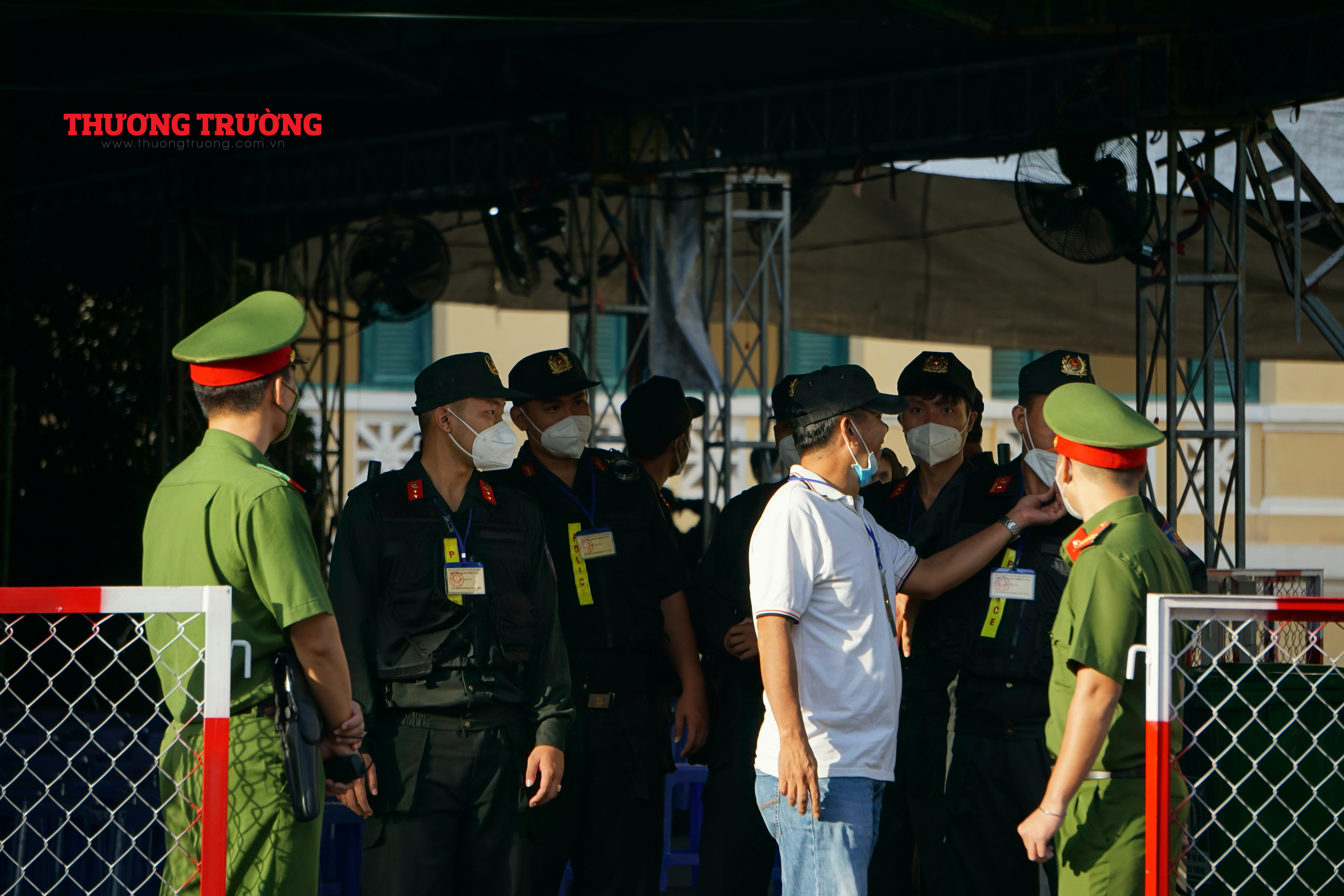 Có khoảng 200 người, trong đó có lực lượng cảnh sát tư pháp, cảnh sát PCCC, bảo vệ, y tế của Trung tâm 115 (chăm sóc sức khỏe cho các bị cáo và những người tiến hành tố tụng, người tham gia tố tụng) túc trực tại chỗ đề phòng các tình huống phát sinh không mong muốn.
