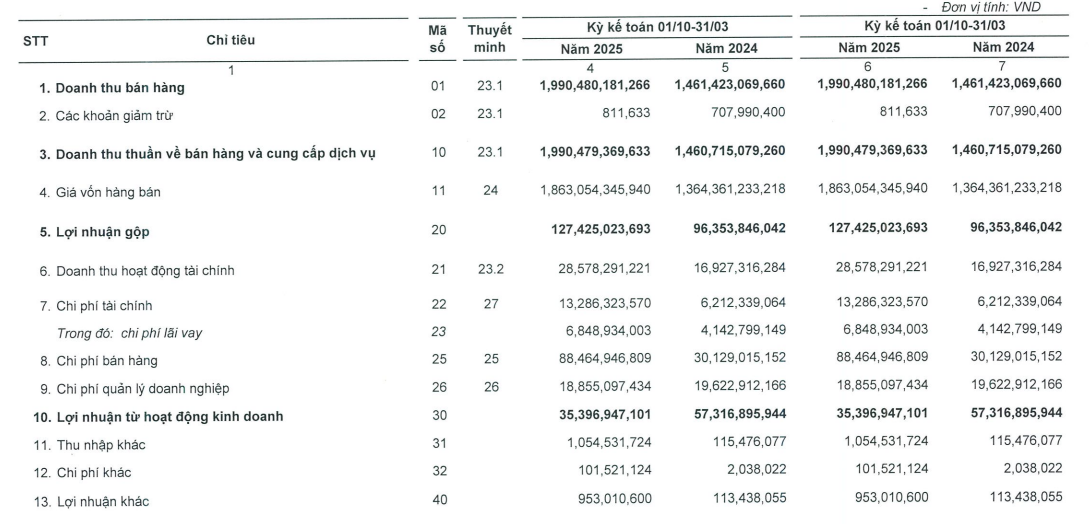 Công ty cổ phần Thực phẩm Sao Ta (Mã: FMC) vừa công bố báo cáo tài chính quý 1/2025 với doanh thu thuần tăng vọt 36% lên 1.990 tỷ đồng. Lợi nhuận gộp cũng tăng mạnh lên 127 tỷ đồng, nhưng biên lợi nhuận đã giảm từ 6,6% về 6,4%.