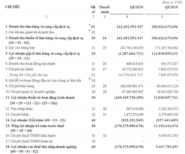 Công ty Cổ phần Đầu tư Apax Holdings (mã CK: IBC) vừa công bố báo cáo tài chính quý I/2020. Theo đó, doanh thu thuần trong kỳ đạt 242,4 tỷ đồng giảm 15% so với cùng kỳ năm trước. Đáng chú ý, giá vốn hàng bán trong kỳ tăng 42%, lên tới 243,7 tỷ đồng. Điều này đã khiến Apax Holdings lỗ gộp gần 1,3 tỷ đồng trong khi cùng kỳ lãi gộp đạt gần 115 tỷ đồng.