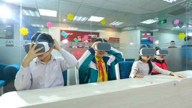 Học viên của Apax Leaders trải nghiệm học tập tiếng Anh với công nghệ thực tế ảo.
