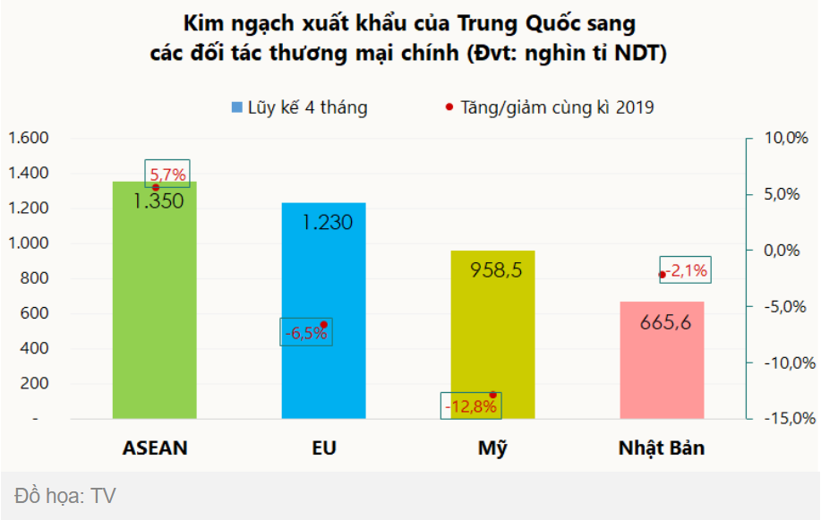 Các đối tác thương mại chính của Trung Quốc trong 4 tháng đầu năm 2020. Đồ họa: TV