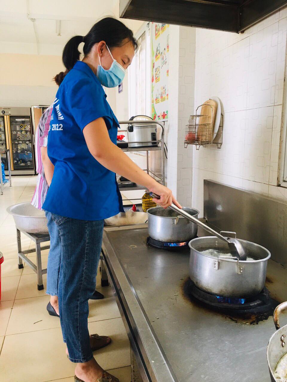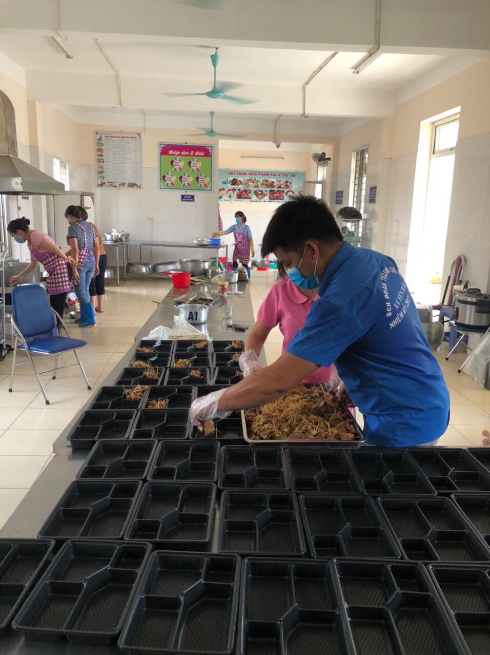 Các tình nguyện viên đến sớm để chuẩn bị suất cơm trong ngày