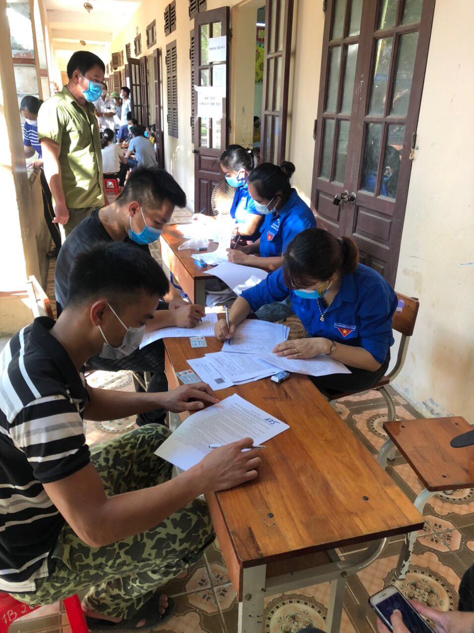 Đoàn viên thanh niên xã Yên Bài hỗ trợ điểm tiêm phòng vaccine cho nhân dân