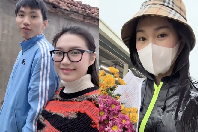 Tại quê chồng, Doãn Hải My vui vẻ đi bộ trên đường làng cùng Đoàn Văn Hậu hay cùng chị dâu chồng đi chợ sớm mua hoa quả.