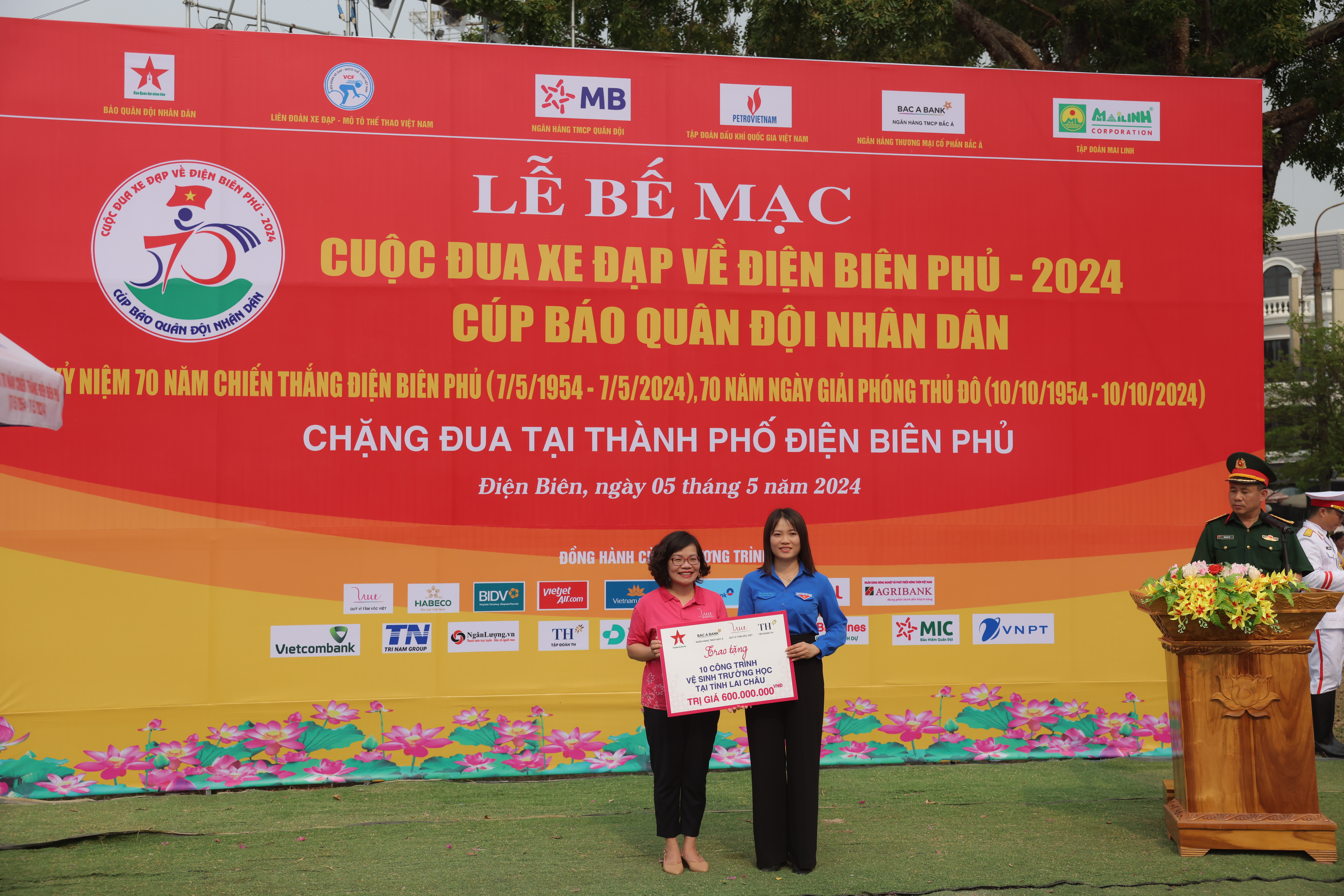 Phát biểu tại Lễ Bế mạc - Chặng đua tại Thành phố Điện Biên Phủ ngày 5/5 vừa qua, ông Chu Nguyên Bình - Phó Tổng Giám đốc Ngân hàng TMCP Bắc Á chia sẻ: “Năm 2024 là một dấu mốc đặc biệt khi Ngân hàng TMCP Bắc Á kỷ niệm 30 năm thành lập (17/09/1994-17/09/2024). Trong suốt hành trình 30 năm năm xây dựng và phát triển, chúng tôi tự hào về những thành tựu đã đạt được. Với mong muốn cột mốc này thêm ý nghĩa, chúng tôi đã quyết định tài trợ xây dựng một ngôi trường ở Điện Biên. Đây là công trình chào mừng 70 năm Chiến thắng Điện Biên Phủ, cũng là công trình chào mừng 30 năm thành lập Ngân hàng TMCP Bắc Á và 10 năm thành lập Quỹ Vì Tầm Vóc Việt (6/12/2014-6/12/2024), là một món quà ý nghĩa dành cho nhân dân tỉnh Điện Biên và góp phần vào thành công cho Cuộc đua”.