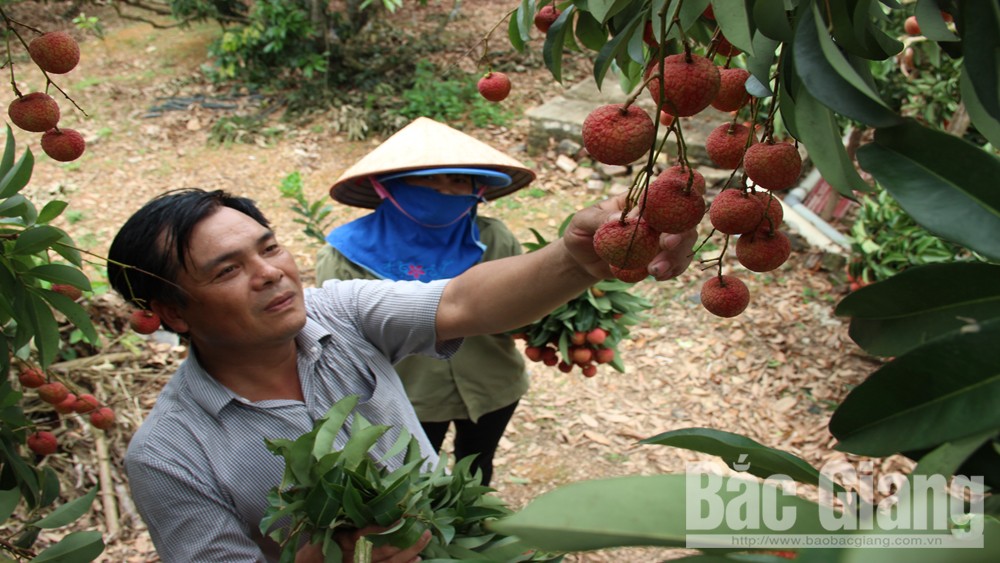 | Gia đình anh Chính xã Thanh Hải (Lục Ngạn) thu hoạch vải thiều. Ảnh: Báo Bắc Giang |