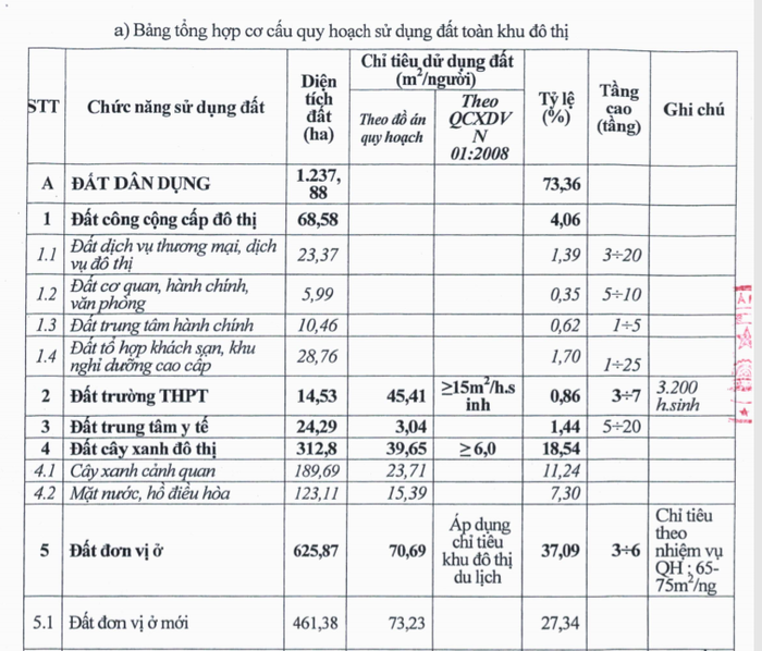 Toàn bộ diện tích đất được quy hoạch thành 7 phân khu trong đó diện tích đất quy hoạch khu đô thị khoảng 1.477,28 ha trong đó: