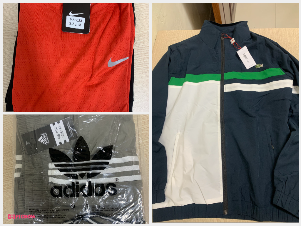 Theo Cục QLTT Bắc Ninh, qua quá trình xác minh, làm việc, đoàn kiểm tra xác định toàn bộ số quần áo trên là giả mạo các nhãn hiệu Lacoste, Adidas, Nike đã đăng ký bảo hộ tại Việt Nam.