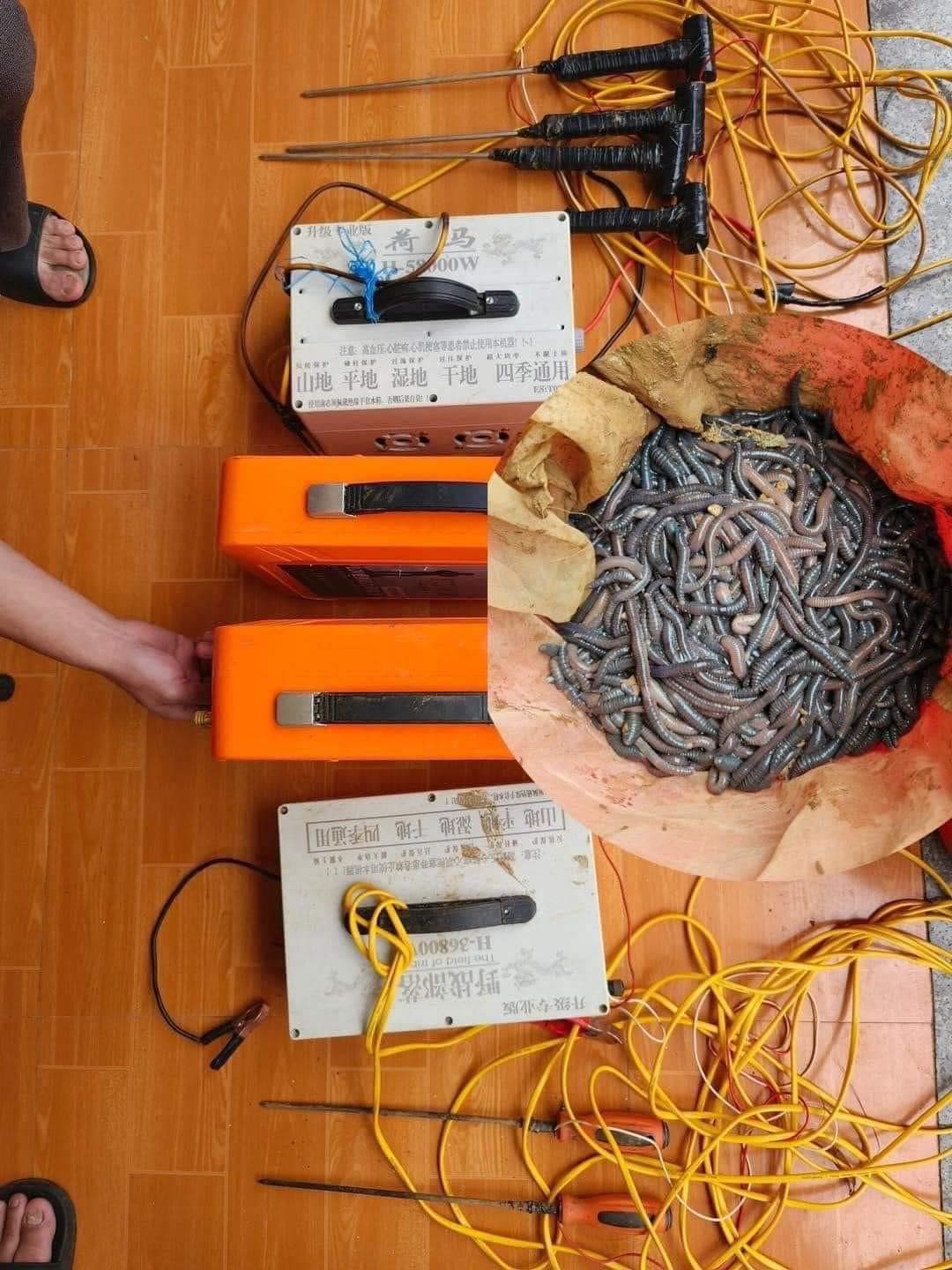 Việc kích điện bắt giun đang diễn ra ở khắp nơi, nhiều người dân phải gồng mình ngăn chặn hoạt động bắt giun đất thì trên các trang mạng thiết bị này vẫn được mua bán khá công khai, chỉ vài trăm nghìn đồng.