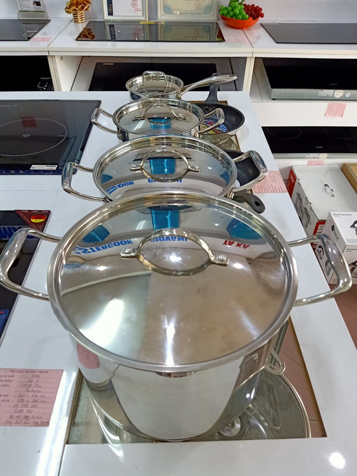 Bộ nồi này là quà tặng khi khách mua bếp từ Munchen.Người đàn ông này khẳng định, showroom của mình là nơi cung cấp hàng chính hãng. Với dòng Munchen được nhập khẩu nguyên chiếc từ Đức và có đủ giấy tờ xuất xứ.