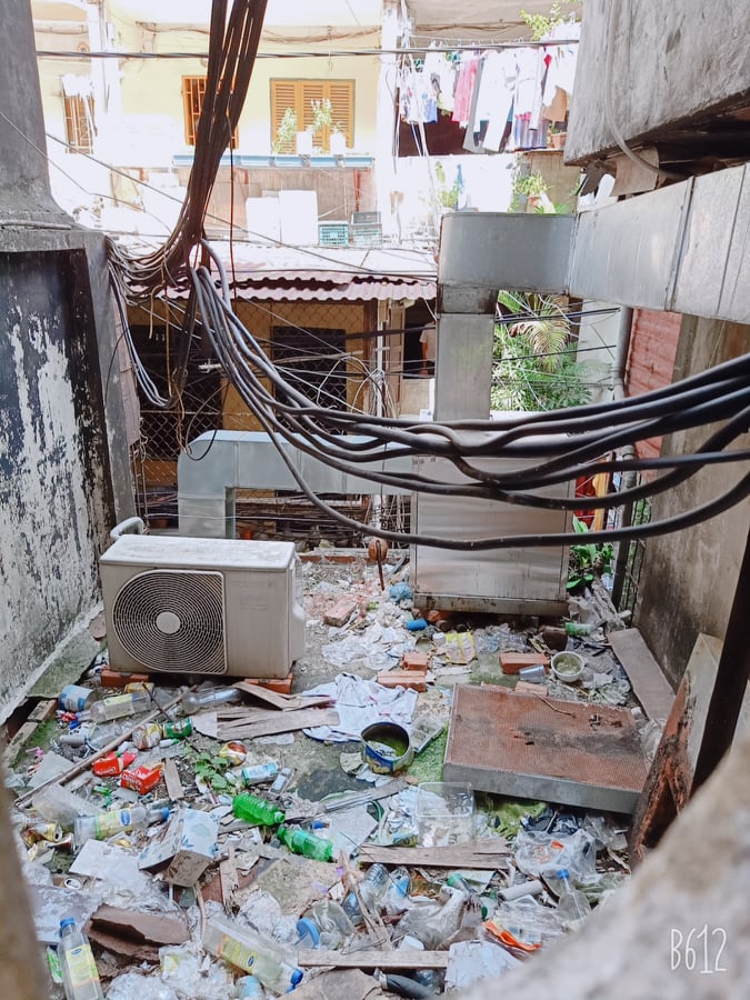 | Rác thải ngập ngụa phía sau tầng 2 của đơn nguyên 1 Ngọc Khánh |