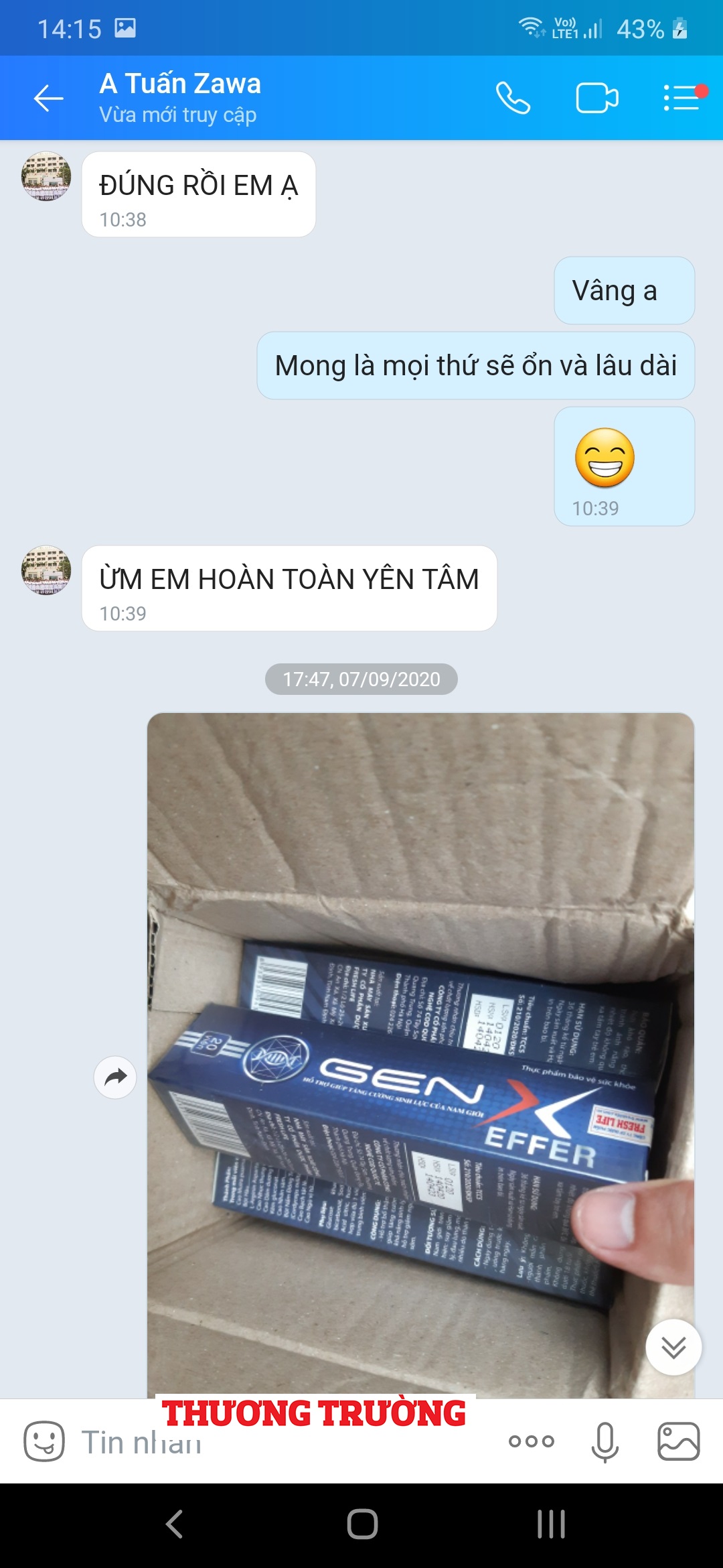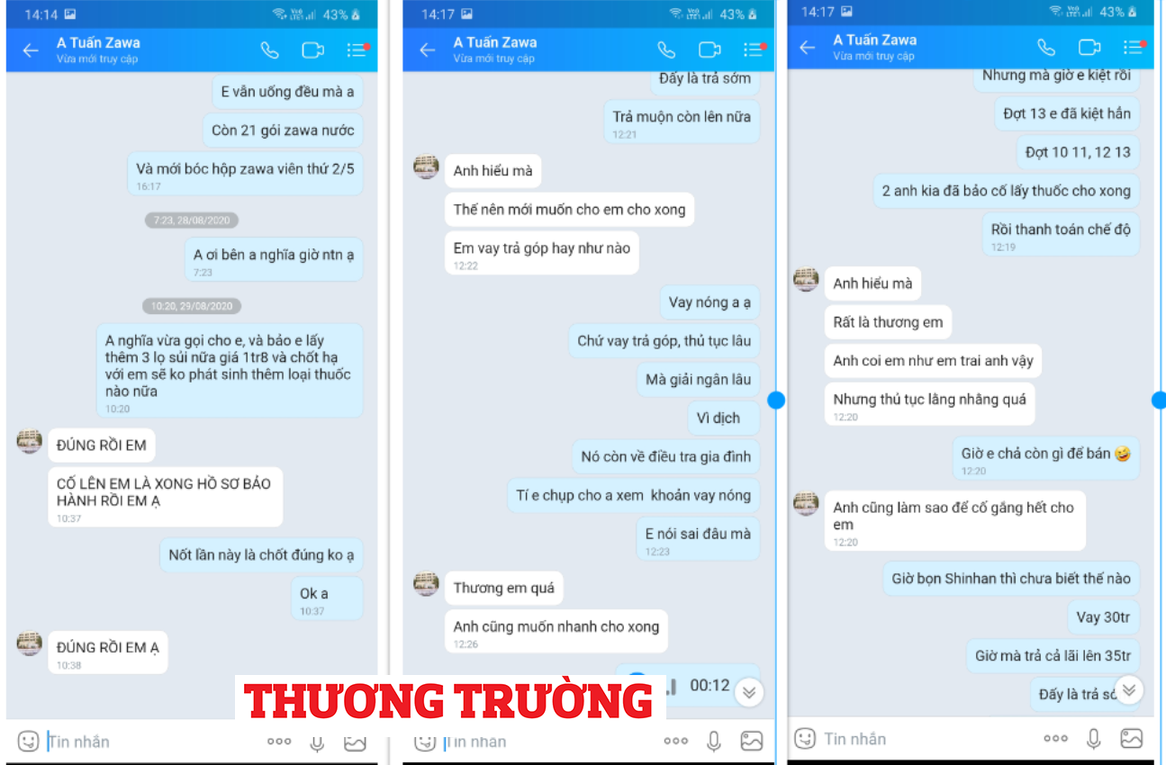 Khi anh H còn tỏ ra băn khoăn về liệu trình số 7, 8  “bồi” thêm: “Cố lên em, liệu trình cuối cùng rồi, điều kiện cuối cùng để em được hỗ trợ hoàn toàn cắt bao quy đầu và thuốc men sau khi cắt”. Ngay sau đó, đơn hàng gồm 3 hộp GenX (20 viên sủi/hộp) + 3 hộp Zawa dạng nước ( 7 gói/hộp) giá 2.000.000 đồng do Công ty CP công nghệ GOB Việt Nam có địa chỉ:P309 toà nhà số 86 Lê Trọng Tấn, Thanh Xuân, Hà Nội sản xuất đã được chốt.