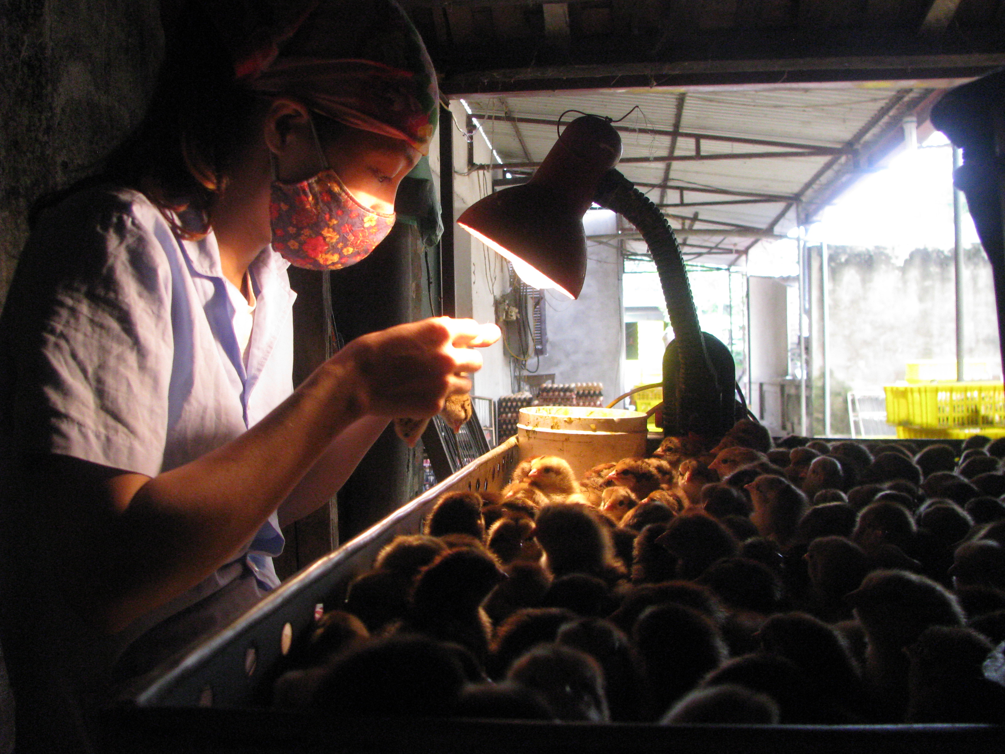 Bước vào lò ấp, mùi phân gà, mùi tanh nồng của gà mới nở sộc thẳng vào mũi khiến tôi ngột ngạt, khó thở. Không chỉ vậy, nơi đây lúc nào cũng ồn ào bởi tiếng liếp nhiếp của hàng ngàn gà con mới nở. Xung quanh, rơm rác, vỏ trứng, gà con chết, thùng các tông vứt la liệt, hỗn độn.