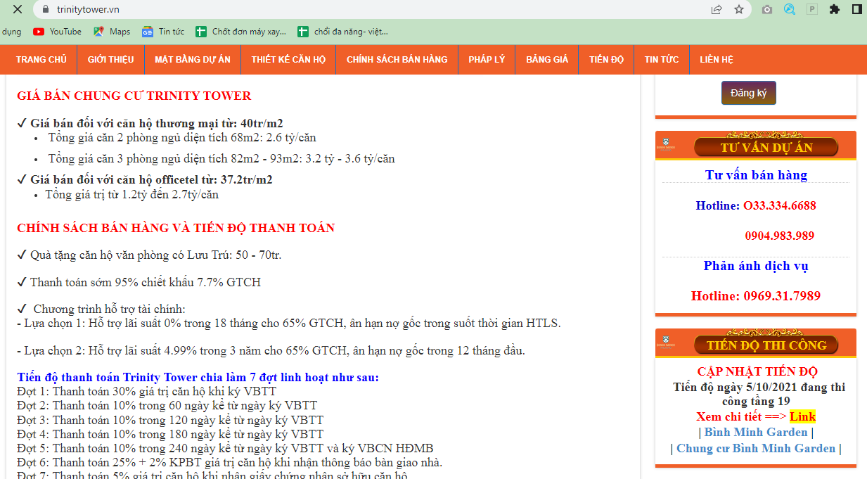 Theo đó, trong vai khách hàng tìm mua sản phẩm của dự án Tòa nhà Hợp tác xã Thành Công (Trinity Tower), PV Thương Trường được nhân viên tư vấn bán hàng tại dự án cho biết, căn hộ thương mại đã được chủ đầu tư bán hết từ lâu, mức giá trung bình khoảng 40 triệu đồng/m2. Cùng với đó, PV bất ngờ được nhân viên tư vấn giới thiệu, mời mua sản phẩm căn hộ văn phòng có lưu trú (officetel).