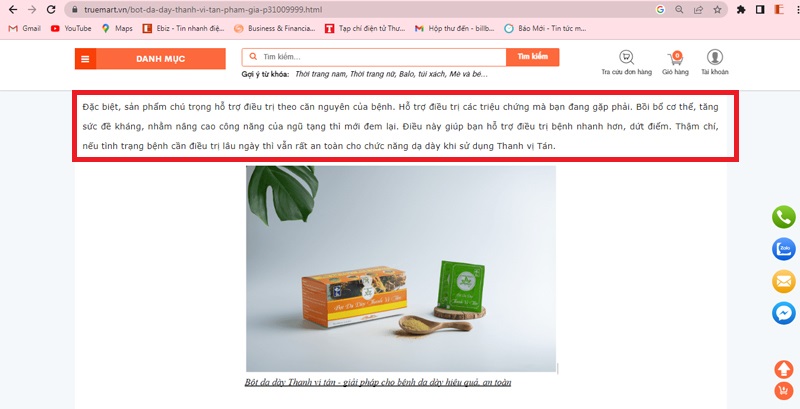 Bột dạ dày Thanh vị tán dù Giấy công bố sản phẩm và Giấy xác nhận nội dung quảng cáo đã hết hiệu lực, song sản phẩm này vẫn còn bày bán trên mạng