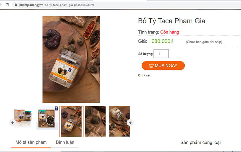 Sản phẩm Bổ tỳ Taca Phạm Gia không phép nhưng vẫn được rao bán trên các website phamgiadongy.vn và phamgiadongy.com