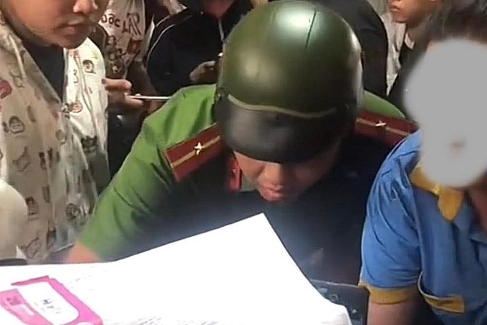 Lực lương Công an làm việc với đại diện bãi trông xe. Ảnh cắt từ clip