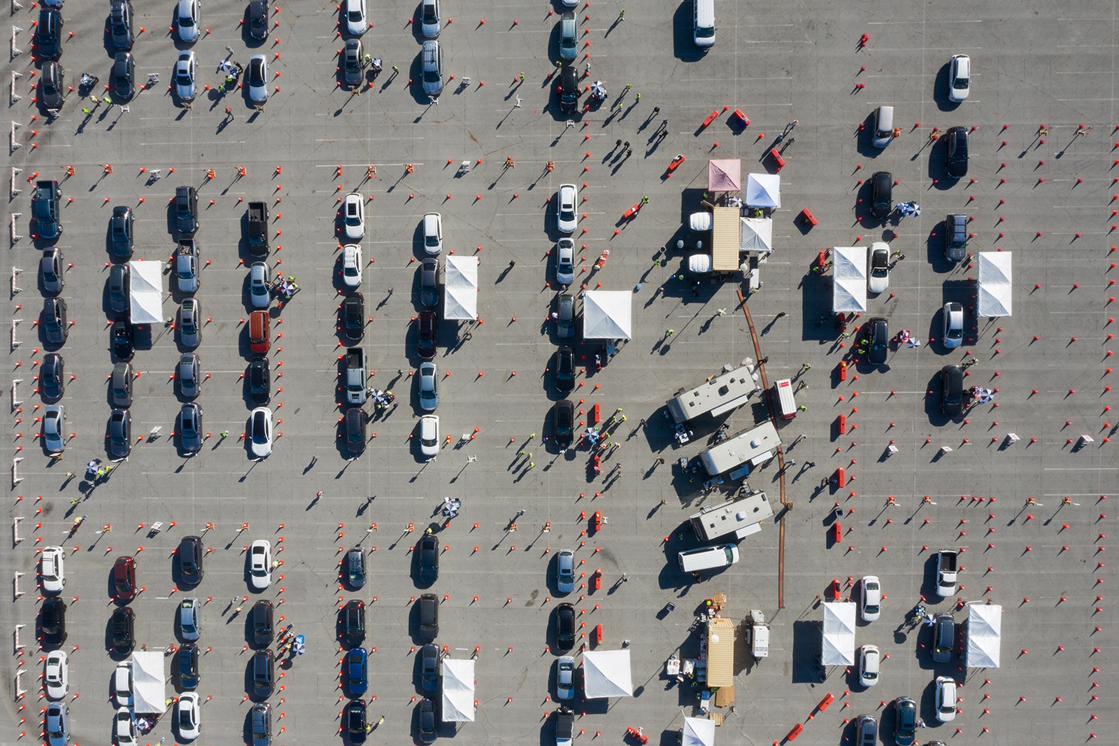 Các tài xế xếp hàng chờ tiêm vaccine tại điểm tiêm chủng diện rộng trong bãi đỗ xe tại thành phố Los Angeles, Mỹ vào ngày 15/1. Ảnh: Getty.