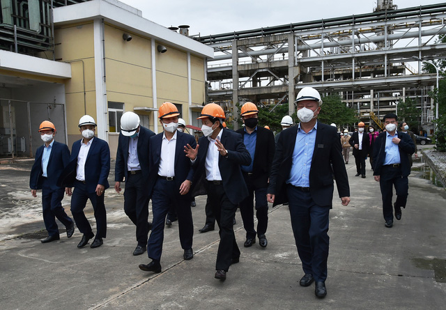Phó Thủ tướng Lê Minh Khái làm việc tại Nhà máy Phân đạm và Hóa chất Hà Bắc. (Ảnh VGP)