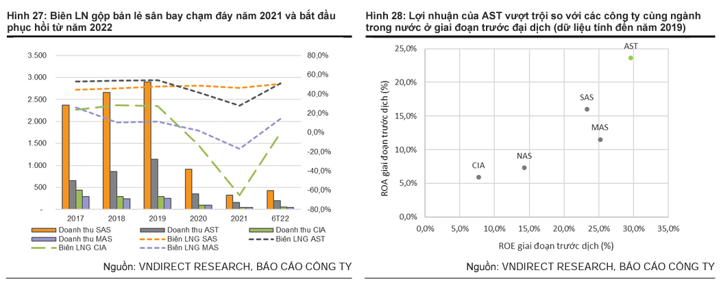 Với kỳ vọng phục hồi giao thông hàng không quốc tế từ quý 4/2022, VnDirect tin rằng kết quả của các công ty bán lẻ sân bay có thể phục hồi với thu nhập dương vào năm 2022 và có thể tăng mạnh từ năm 2023 khi lượng khách quốc tế phục hồi mạnh mẽ. Trong s ố các nhà bán lẻ sân bay, VnDirect đánh giá cao AST vì họ đã biến những thách thức thành cơ hội để mở rộng kinh doanh trong bối cảnh toàn bộ ngành hàng không đang bị ảnh hưởng nặng nề bởi đại dịch Covid19.