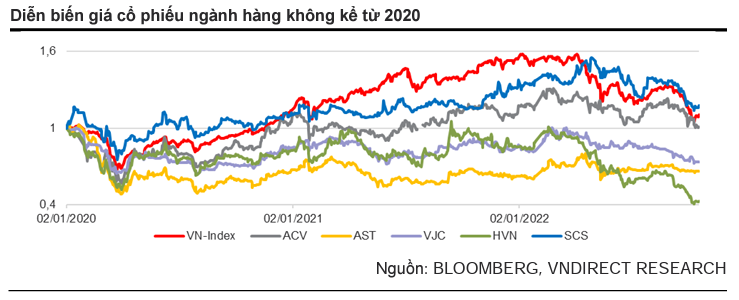 VnDirect cho rằng tăng trưởng lợi nhuận kể từ quý 3/2022 – 2023 ở hầu hết các phân khúc (cảng, hãng hàng không và bán lẻ) tương đối vững chắc bởi sự phục hồi của khách quốc tế. Việc thị trường điều chỉnh gần đây đã khiến giá của các cổ phiếu trong ngành về gần thời điểm bùng phát dịch (tháng 3/2020). Do đó, đây là thời điểm để tích lũy cổ phiếu ngành hàng không với mức giá hấp dẫn và tăng trưởng lợi nhuận vững chắc.