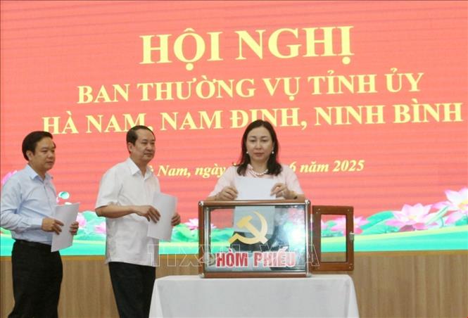 Chiều 11/6, tại thành phố Phủ Lý, Ban Thường vụ Tỉnh ủy Hà Nam, Nam Định, Ninh Bình tổ chức Hội nghị thông qua phương án nhân sự; thảo luận về dự thảo Đề án thành lập Đảng bộ tỉnh Ninh Bình sau hợp nhất.