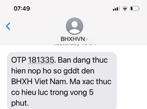 Bước 4: BHXH Việt Nam sẽ gửi mã OTP về số điện thoại của người hưởng.