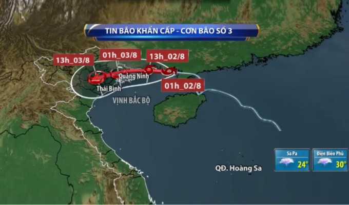 Trong ngày 3/8, ở vịnh Bắc Bộ có gió mạnh cấp 6-7, giật cấp 8. Sóng biển cao từ 2-3m, biển động mạnh. Ven biển các tỉnh Quảng Ninh, Hải Phòng có gió mạnh cấp 6, giật cấp 7-8. Các tỉnh ven biển từ Thái Bình đến Thanh Hóa có gió giật cấp 6-7.