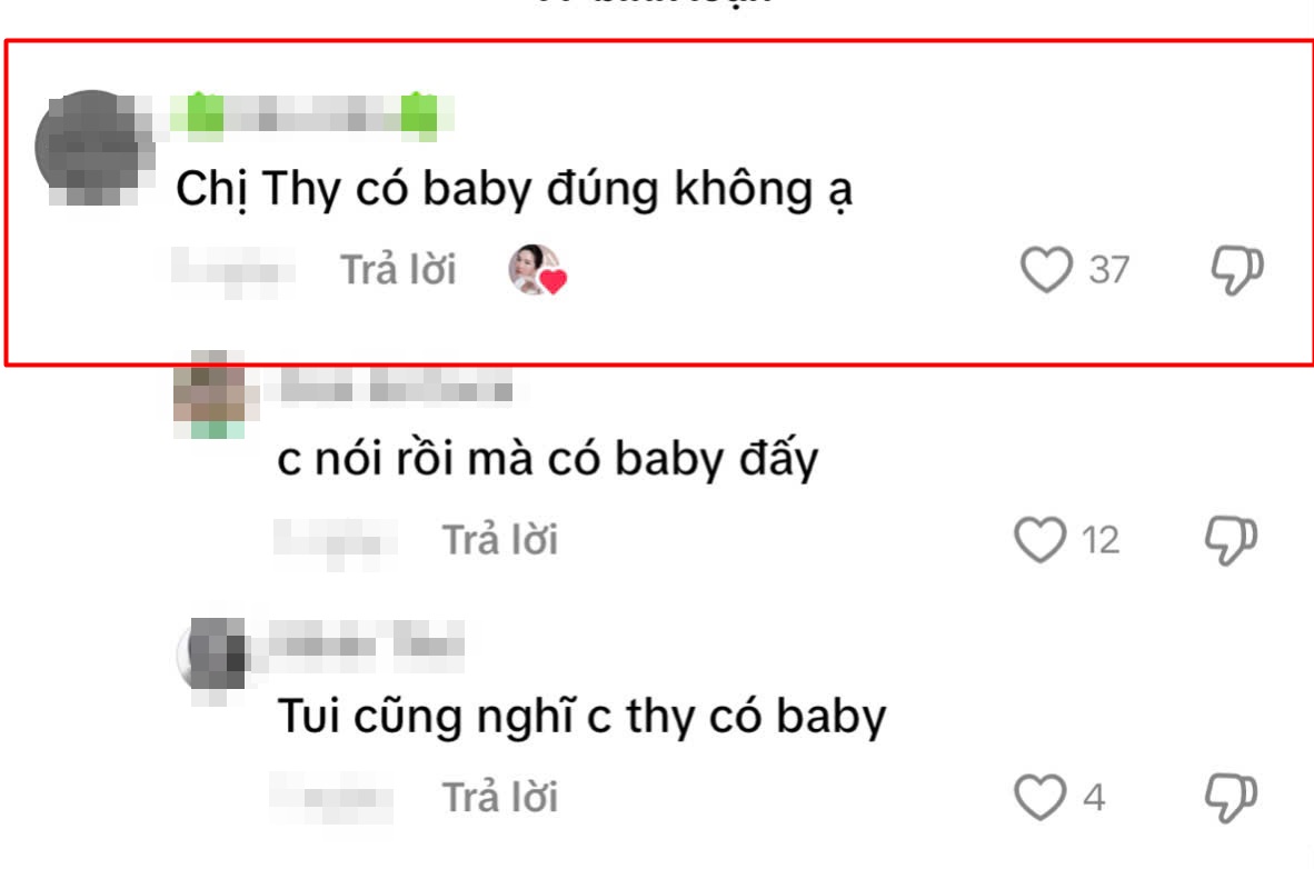Đặc biệt, dưới phần bình luận, một netizen đã trực tiếp hỏi Bảo Thy về chuyện bầu bí: "Chị Thy có baby đúng không ạ". Bảo Thy liền ngay lập tức “thả tim” nhận xét này.
