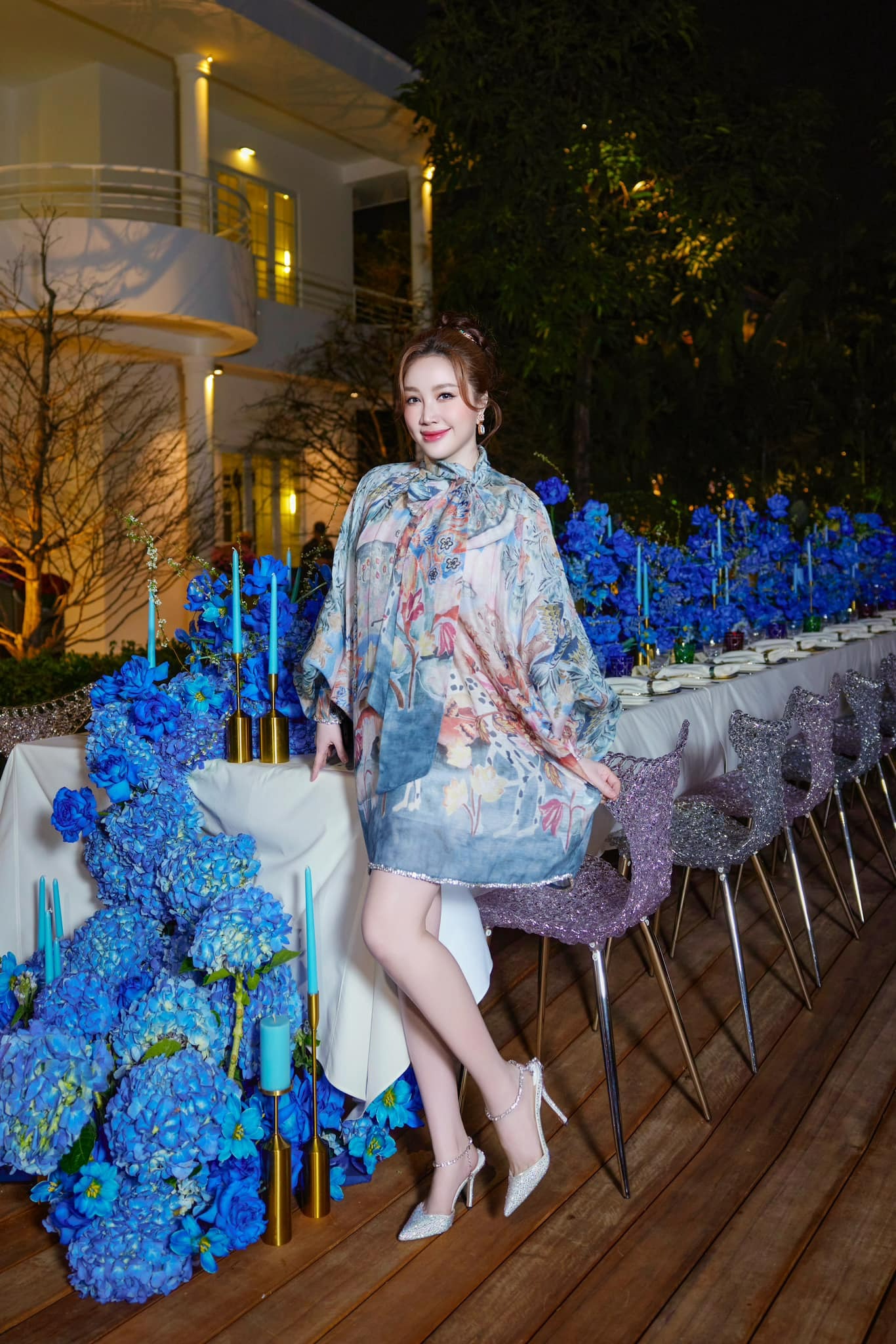 Trước đó, Bảo Thy cùng những người bạn như vợ chồng Bình Minh, vợ chồng Chi Bảo có mặt trong một bữa tiệc. "Công chúa bong bóng" khiến nhiều người tò mò khi diện một chiếc váy rộng, giấu dáng.