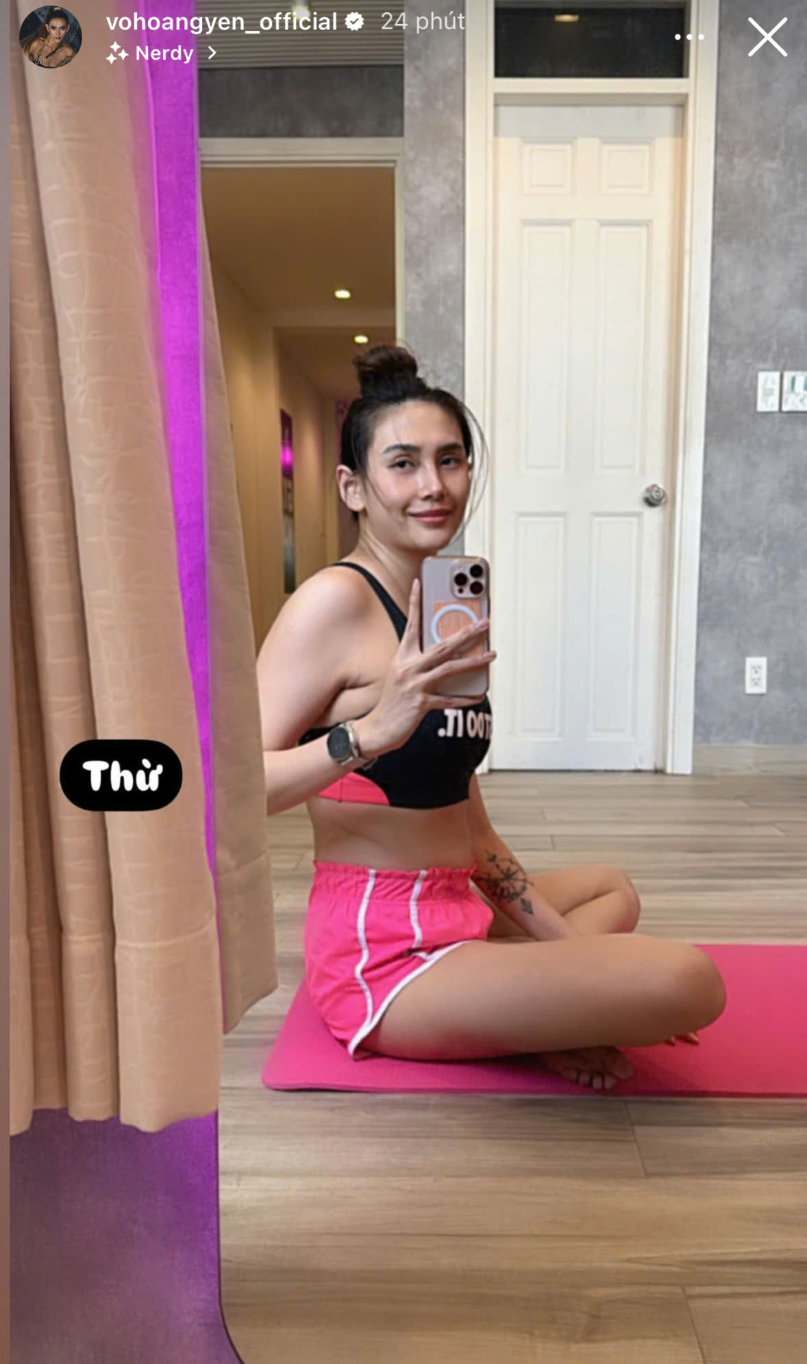 Mới đây, người đẹp gây chú ý khi chia sẻ hình ảnh đang trong một buổi tập luyện. Ngoài mặt mộc không tì vết thì vóc dáng sau 6 tháng sinh nở của chân dài 8X đặc biệt gây chú ý. Trong hình ảnh chụp cận, dễ dàng nhận ra Võ Hoàng Yến vẫn chưa về lại vóc dáng thon gọn hoàn toàn.