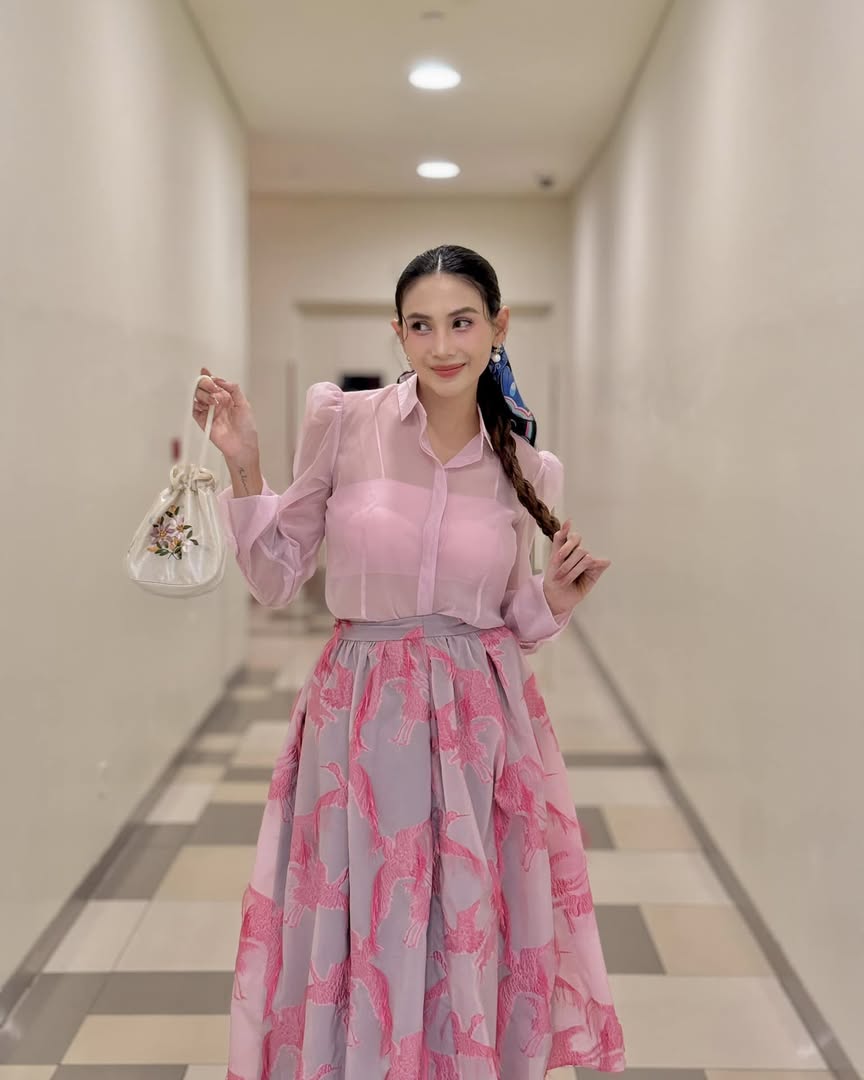 Có thể thấy từ sau sinh con, Võ Hoàng Yến ưa chuộng váy áo mang form dáng rộng, có thể hỗ trợ tối đa việc giấu dáng.