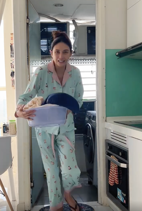 Lần đầu mẹ, Võ Hoàng Yến không tránh khỏi những bỡ ngỡ, giờ giấc sinh hoạt xáo trộn. Trong đoạn video đăng tải trên trang cá nhân, nữ siêu mẫu chia sẻ cảnh "lếch nhếch" vừa tranh thủ làm việc nhà vừa chăm con khiến netizen thích thú.